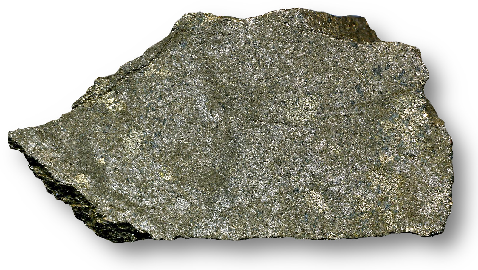 Ruda niklu i żelaza z okolic Sudbury w Kanadzie. Widoczna przecięta powierzchnia, a na niej kryształy minerałów: pentlandytu, pirotynu i magnetytu. Fot. James St. John, Flickr, Wikimedia Commons.