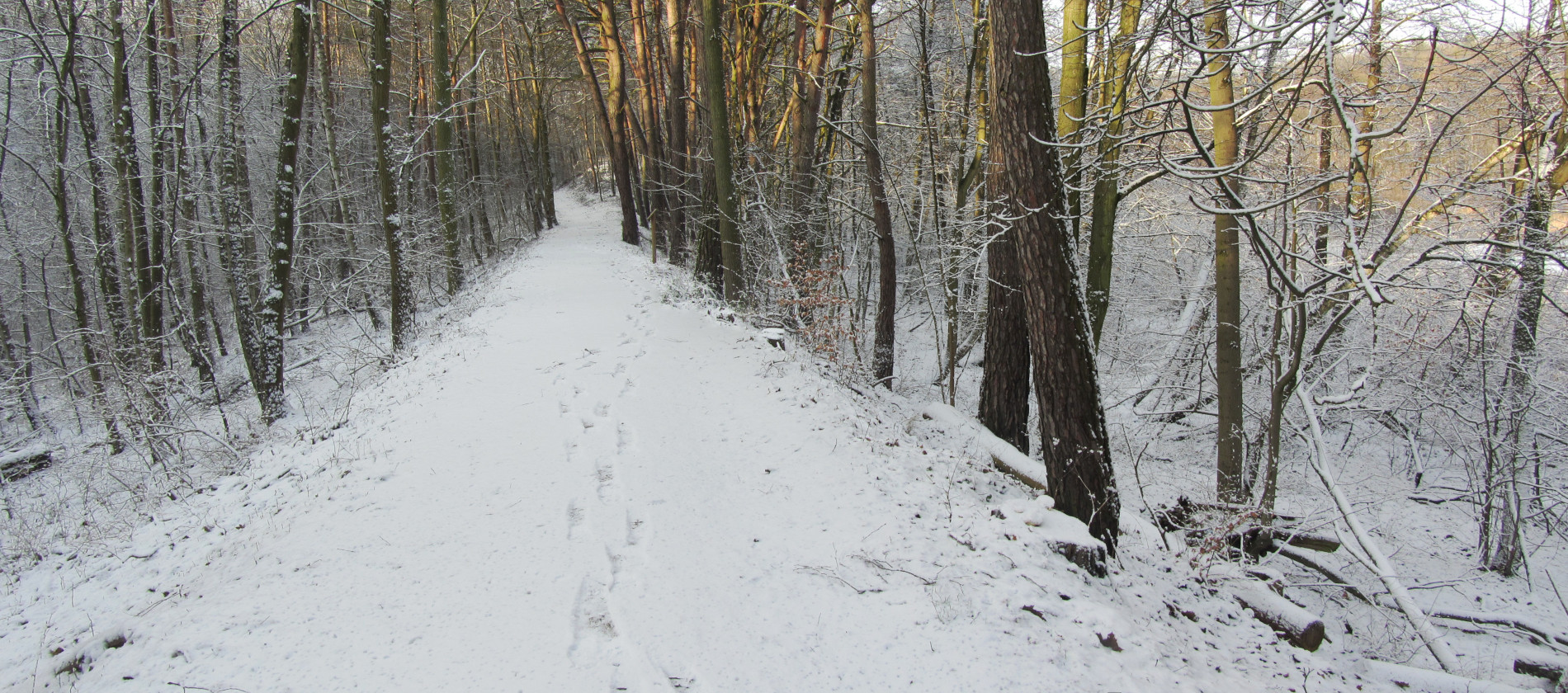 Droga wspinająca się na wierzchołek znajdującego się po prawej wydłużonego wzgórza ozowego. Oz znajduje się w miejscowości Skrzynki na zachód od Poznania i jest częścią najdłuższego w Polsce systemu ozów.
