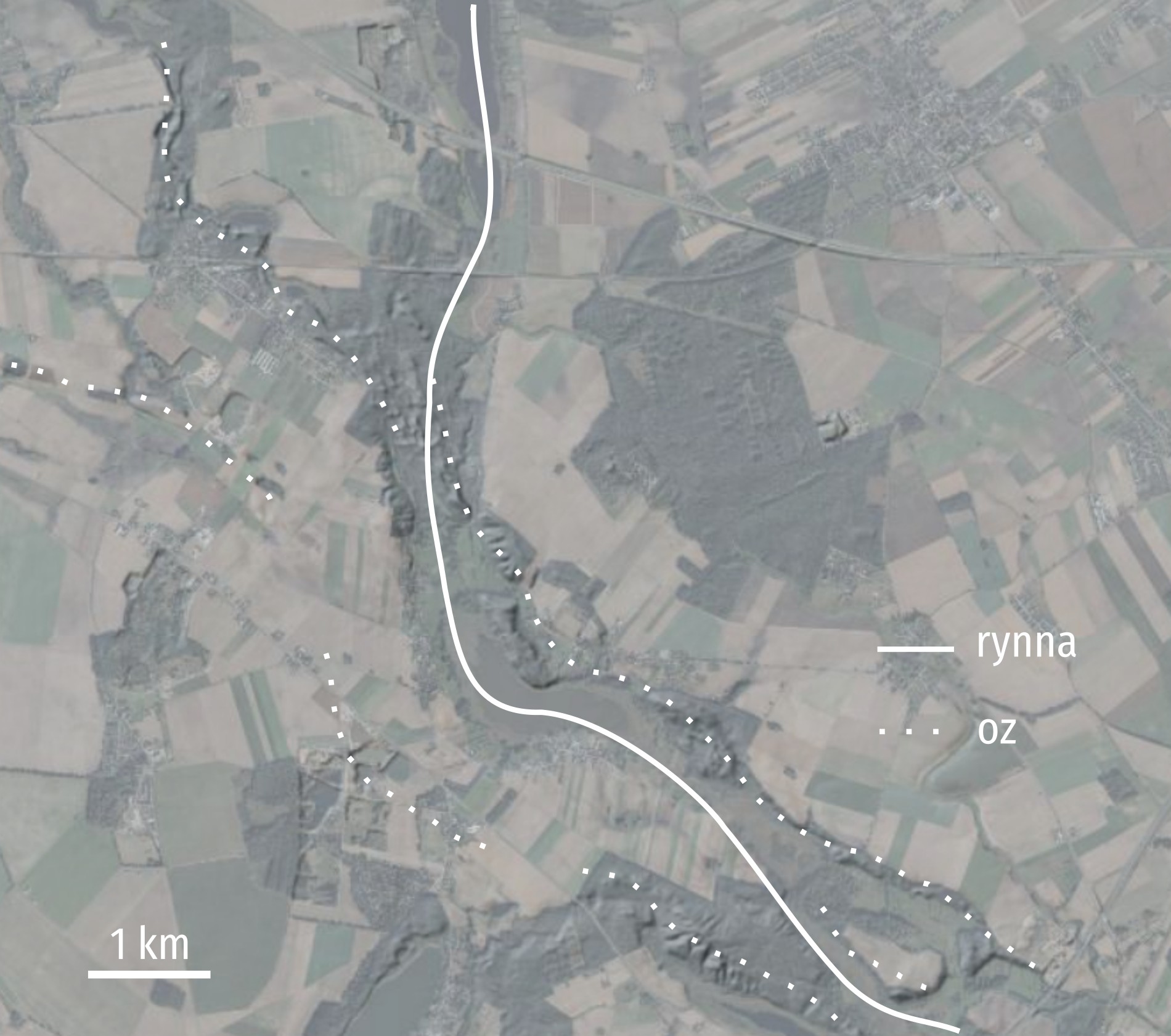 Ciąg rynnowo-ozowy w okolicach miejscowości Skrzynka koło Poznania. To fragment najdłuższego w Polsce mosińsko-bukowskiego systemu ozowego. Ozy ciągną się po obu stronach głębokiej doliny rynnowej.